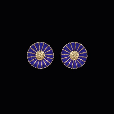 A. Michelsen Marguerit / Daisy Øreklips i forgyldt sterling sølv med blå emalje - 18mm.