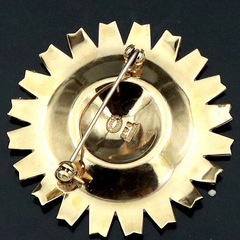 Georg Jensen Marguerit / Daisy Broche i forgyldt sterling sølv med kongeblå emalje - 43mm.