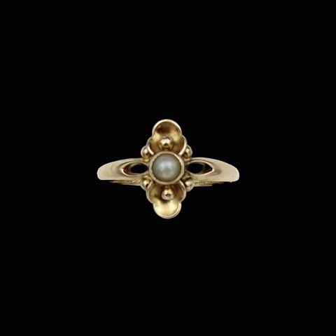 Evald Nielsen 1879 - 1958. Skønvirke ring i 14k guld med perle.