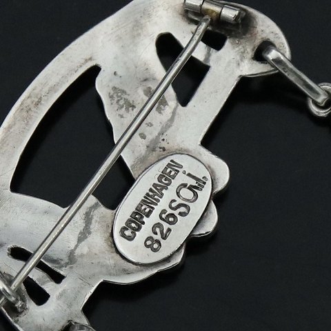 Georg Jensen. Broche i 826s sølv med agat og rav. 1907-14 stempler.