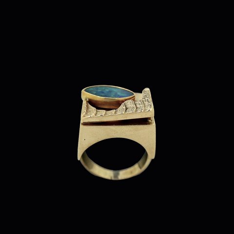 Frank Ahm. Ring i 14k guld med Opal. Tegnet og udført hos Frank Ahm 1970 - 2000, Denmark. Stemplet 585, F. Ahm. Str. 56 mm. 2 x 1,9 cm. Vægt 12 g. Brugt i god stand.
