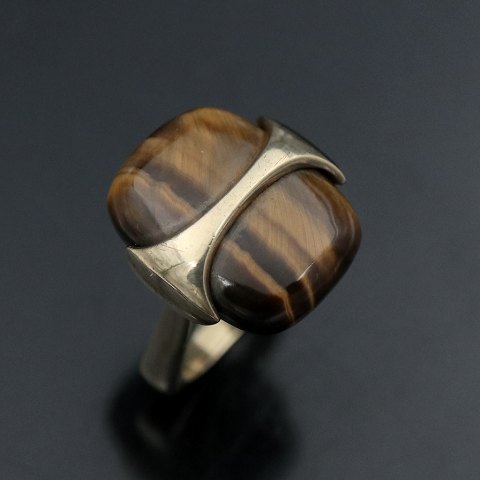 Poul Klarlund - Kbh. Ring i 18k guld tigerøje.