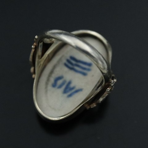 Jais Nielsen 1885-1961. Ring i forgyldt sterling sølv med keramisk relief.