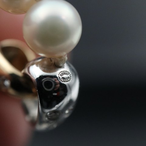 Georg Jensen. Unika perlekæde med lås i 18k hvid- og gulguld med brillanter.