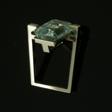 Vintage Ring i 18k hvidguld med diamanter 0.15kt og Aquamarin.