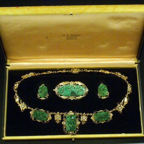 Viggo Wollny. Smykkesæt i 14k guld med jade.