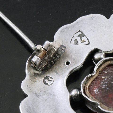 Thorvald Bindesbøll (1846-1908). Broche i Sølv med rav - Holger Kyster.