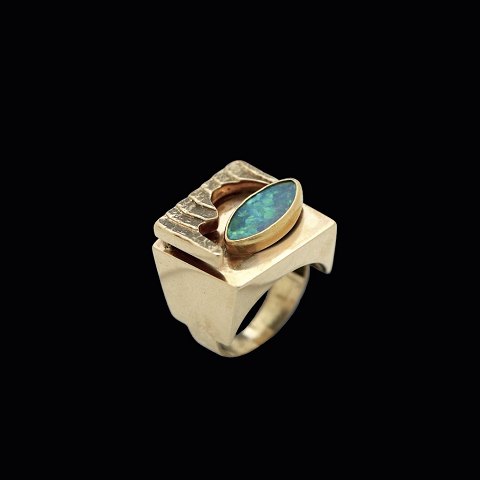 Frank Ahm. Ring i 14k guld med Opal. Tegnet og udført hos Frank Ahm 1970 - 2000, Denmark. Stemplet 585, F. Ahm. Str. 56 mm. 2 x 1,9 cm. Vægt 12 g. Brugt i god stand.