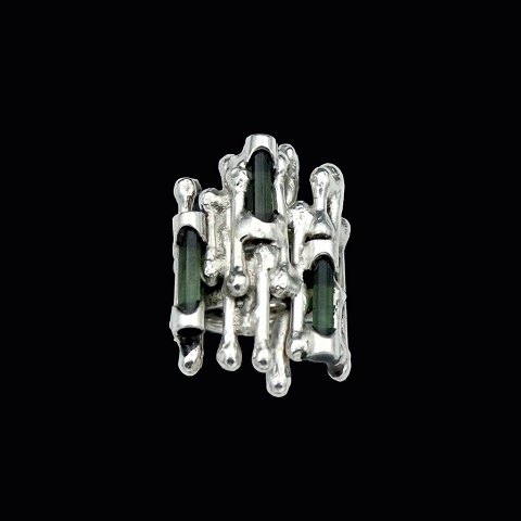 Flemming Knudsen. Ring i sterling sølv med turmalinkvarts. Tegnet og udført hos Flemming Knudsen - 1967 - . Stemplet Fl.Kn. 925S. Str. 55mm. 3,5 x 2,4 cm. Vægt 24,3 g. Brugt i god stand.