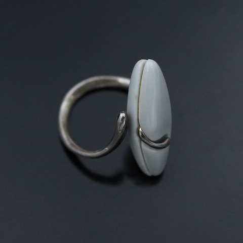 Royal Copenhagen. Ring i sterlingsølv med porcelæn.