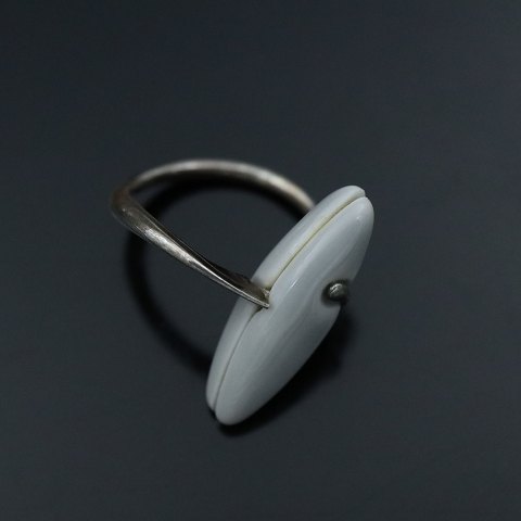 Royal Copenhagen. Ring i sterlingsølv med porcelæn. Tegnet og udført hos Royal Copenhagen. Str. 57 mm 2,5 x 1,9 cm. Vægt 4,6 g. Brugt i god stand.