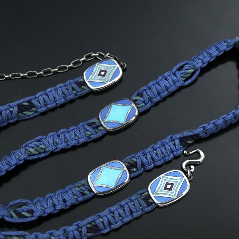 Georg Jensen. Macramé bælte med plaketter i sterling sølv med emalje - Naja Salto.
