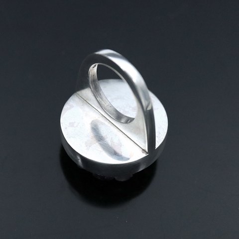 Boy Johansen. Ring i sterling sølv med ametyst. Tegnet og udført hos Svend Erik Boy Johansen - Aarhus. Stemplet BoyJ, 925S. Str. 52 mm. Diam. 2,9 cm. Vægt 32,3 g. Brugt i god stand.