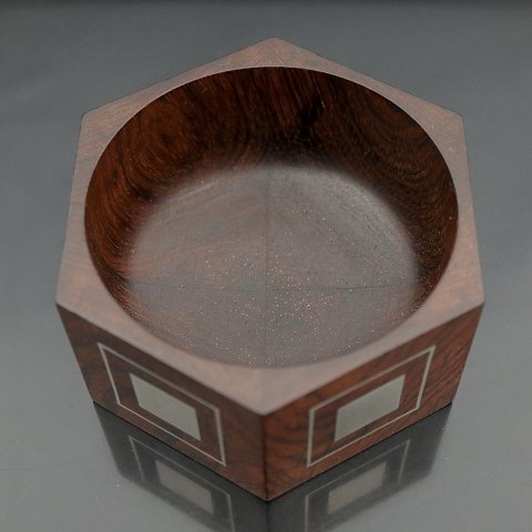 Hans Hansen. LIlle skål i palisander med indlagt sterling sølv.