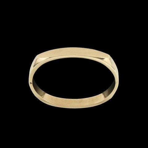 Jos. Kahn - KBH. Hænglset armring i 14k guld. Tegnet og udført af Jos. Kahn - Copenhagen 1957 - 1990. Stemplet Jo.K. 585. Indre dia. 6,2 x 5,5 cm. Bredde 0,8 cm. Vægt 20 g. Brugt i god stand.